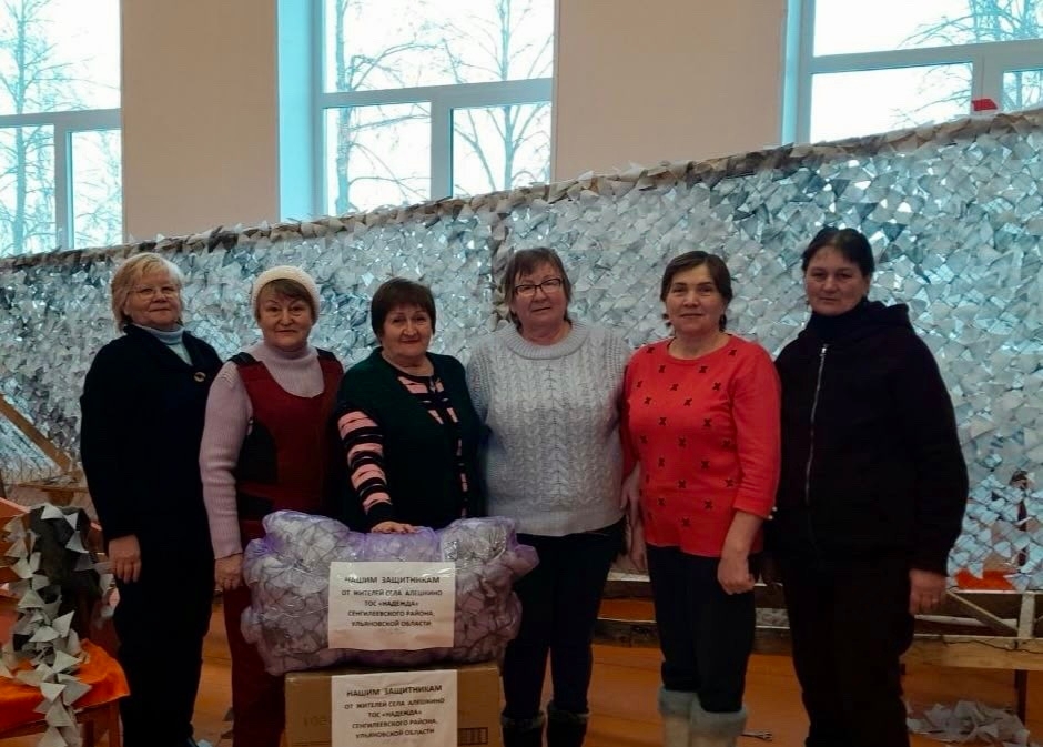 Уже не первый год в Сенгилеевском районе, на базе территориального общественного самоуправления «Надежда», действует патриотическая акция «Народ и армия едины». Для Волонтеров ТОС — это ежедневный, кропотливый и самоотверженный труд. Изо дня в день активисты собирают средства, закупают основу и ткань, формируют гуманитарные грузы и, самое главное, плетут маскировочные сети для наших защитников в зоне специальной военной операции.